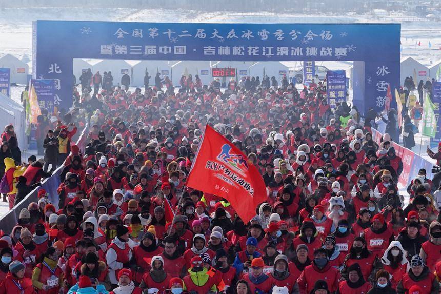 3000余名冰雪运动爱好者在松花江上逐梦冰雪情。白山市委宣传部供图_副本